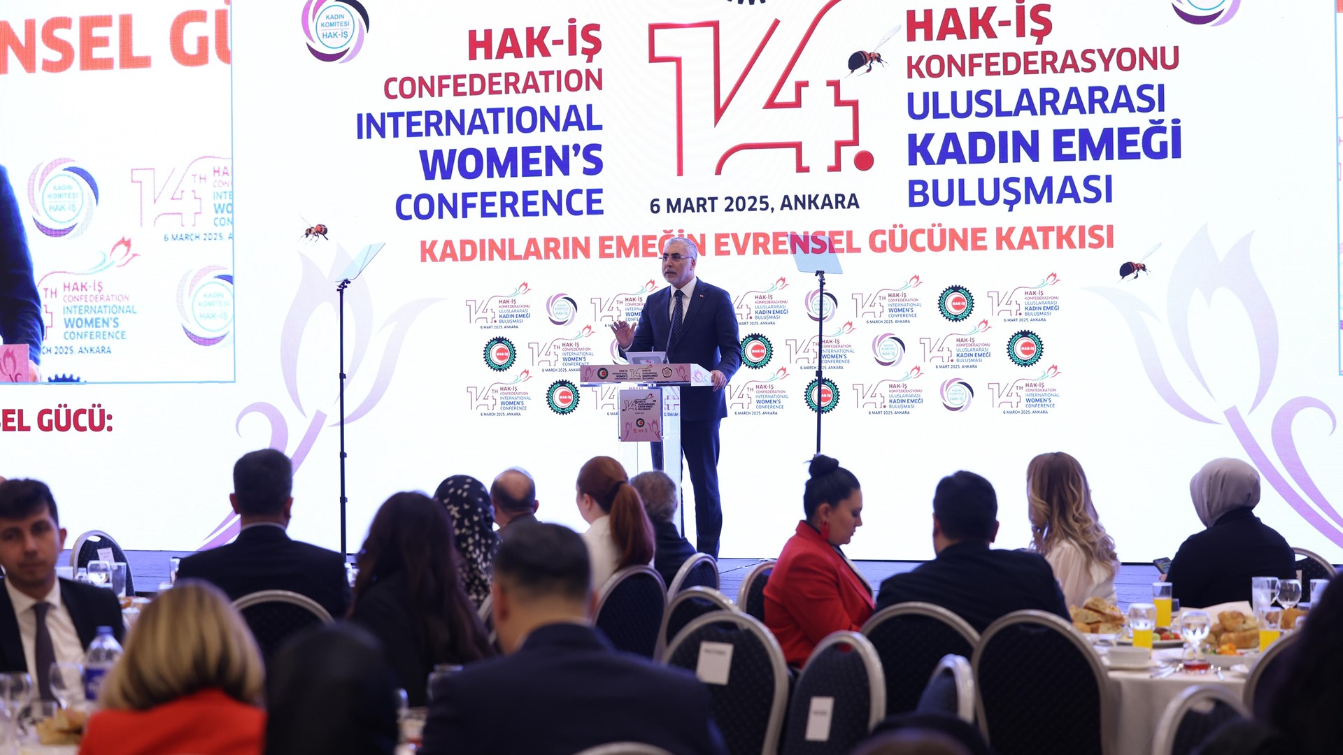 Çalışma ve Sosyal Güvenlik Bakanı Prof. Dr. Vedat Işıkhan, Hak İşçi Sendikaları Konfederasyonu’nun (HAK-İŞ) Kadınların Emeğin Evrensel Gücüne Katkısı temasıyla düzenlenen “14. Uluslararası Kadın Emeği Buluşması Programı”na iştirak etti.