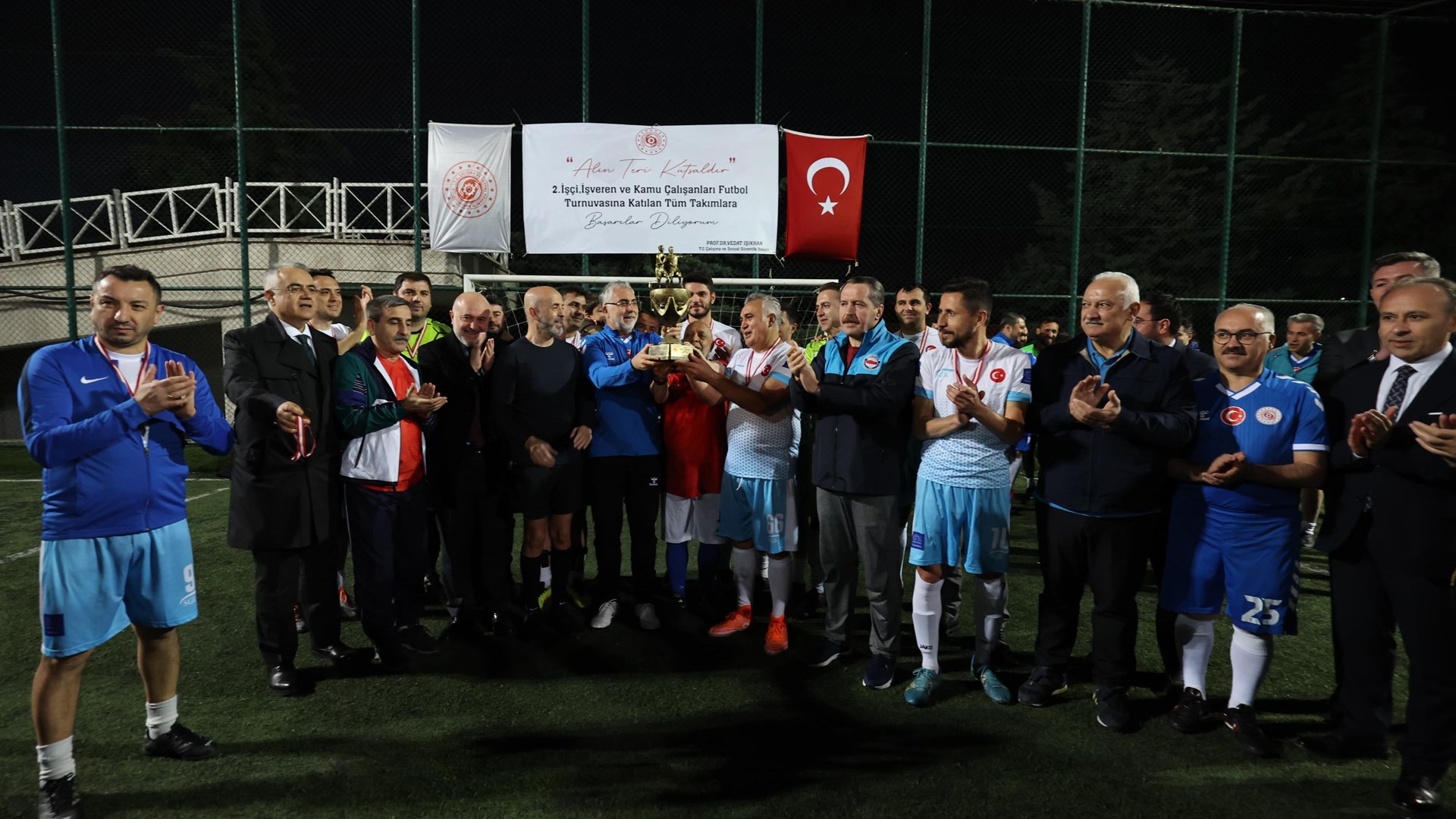 Çalışma ve Sosyal Güvenlik Bakanı Prof. Dr. Vedat Işıkhan, 1 Mayıs Emek ve Dayanışma Günü etkinlikleri kapsamında Çalışma ve Sosyal Güvenlik Bakanlığı’nda düzenlenen "Emek ve Dayanışma Futbol Turnuvası" finaline katıldı.