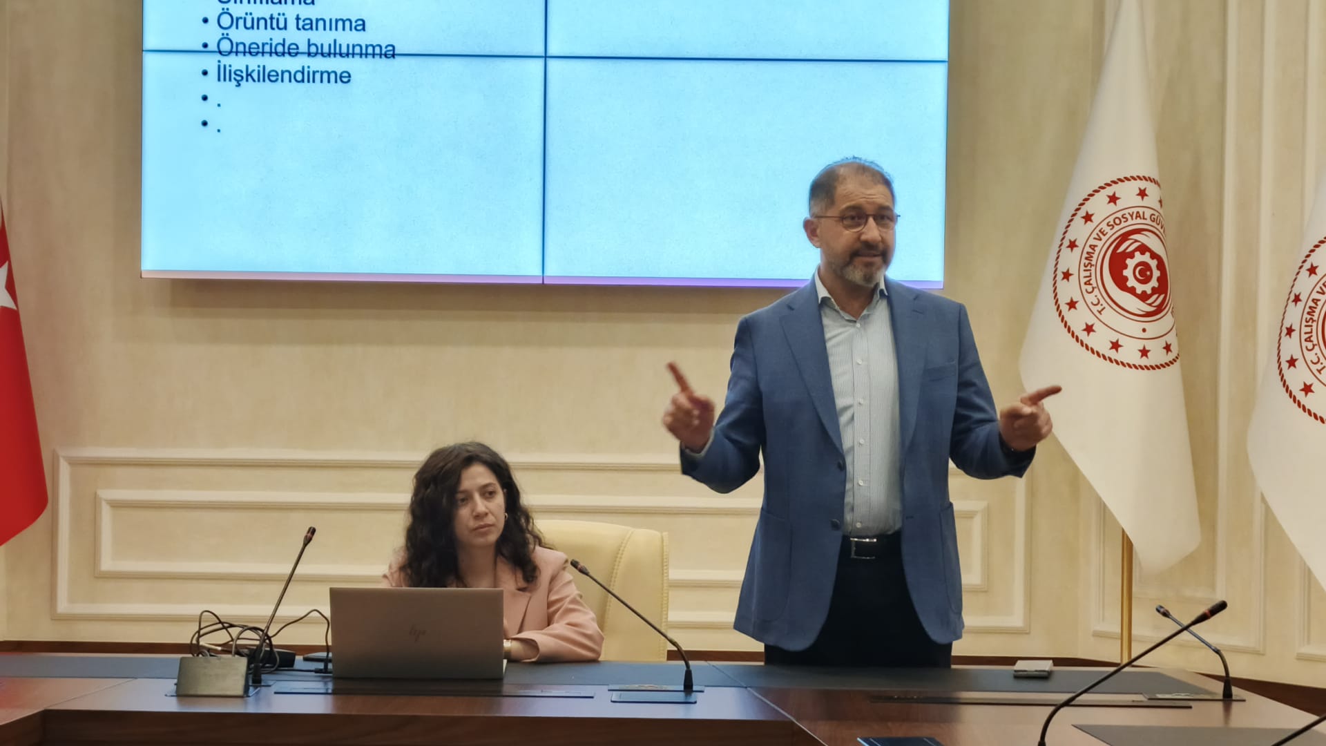 Konuşmanın ardından Ankara Hacı Bayram Veli Üniversitesi öğretim üyeleri Prof. Dr. Selçuk Karaman ve Dr. Semiha Güngör tarafından gerçekleştirilen eğitimde çalışma hayatında hızla yaygınlaşan yapay zekâ teknolojilerinin doğru ve etkin kullanımına ilişkin bilgiler verildi.