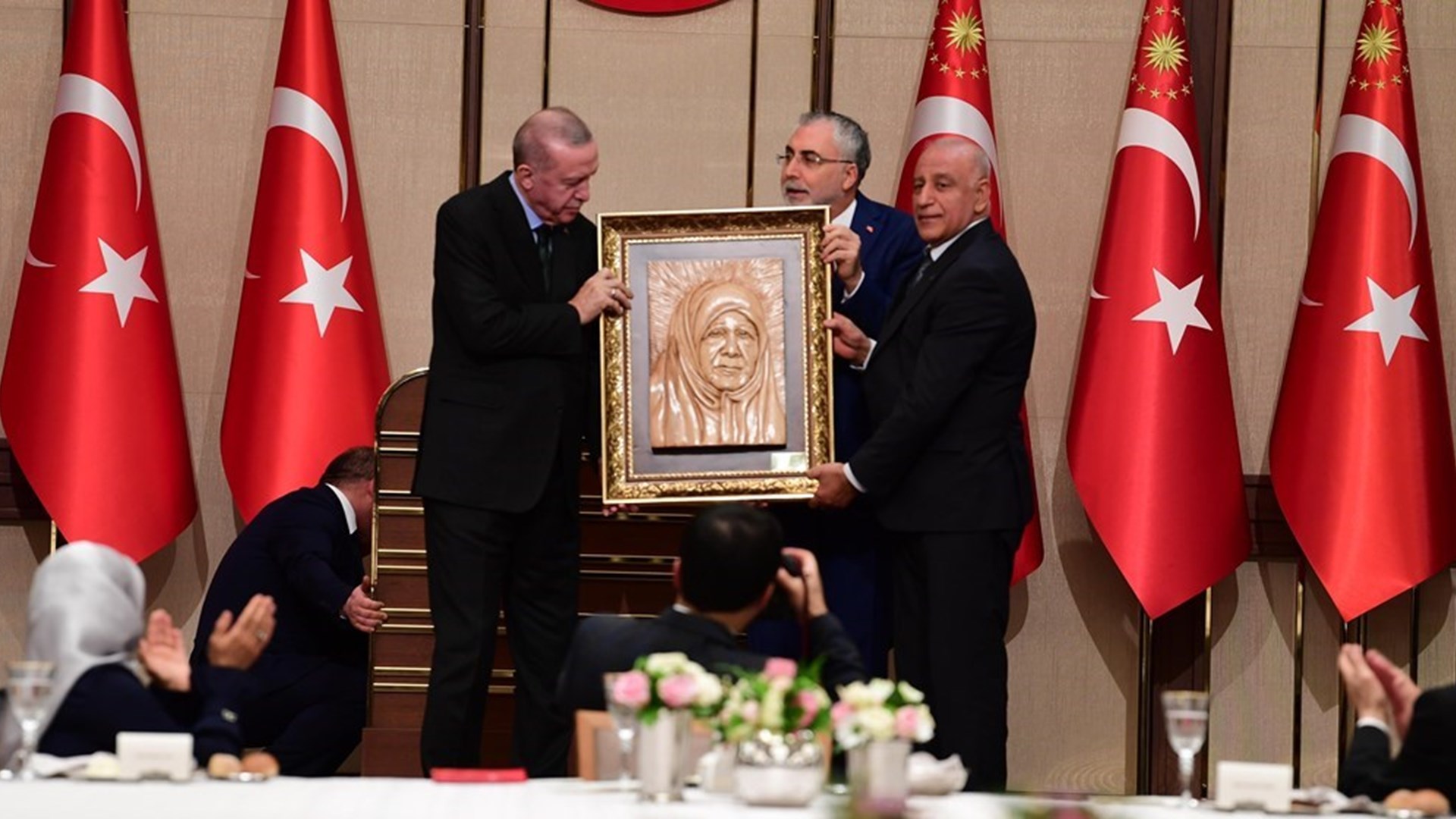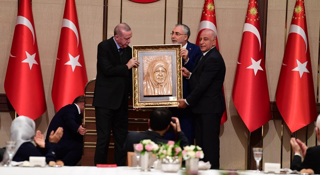 Program sonunda, ahşap ustası Behzat Böke tarafından ıhlamur ağacından yapılmış olan Cumhurbaşkanı Recep Tayyip Erdoğan’ın annesi merhume Tenzile Erdoğan’ın portresi Erdoğan’a takdim edildi. Ardından aile fotoğrafı çekildi.