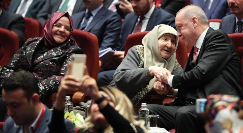 "Huzurevi tabelalarının arttığı değil, kuşakların aynı çatı altında yaşadığı veya ilişkilerin kesintisiz sürdüğü bir Türkiye istiyoruz." diye konuşan Cumhurbaşkanı Erdoğan dünya nüfusunun hızla yaşlandığına şu sözlerle dikkat çekti: