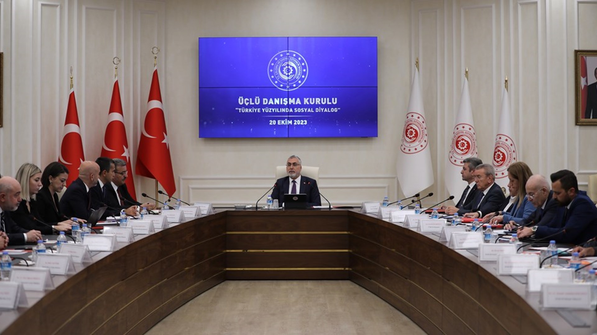 Üçlü Danışma Kurulu, Sayın Bakanımız Prof. Dr. Vedat IŞIKHAN başkanlığında 20 Ekim Cuma günü Çalışma ve Sosyal Güvenlik Bakanlığı’nda toplanmıştır.