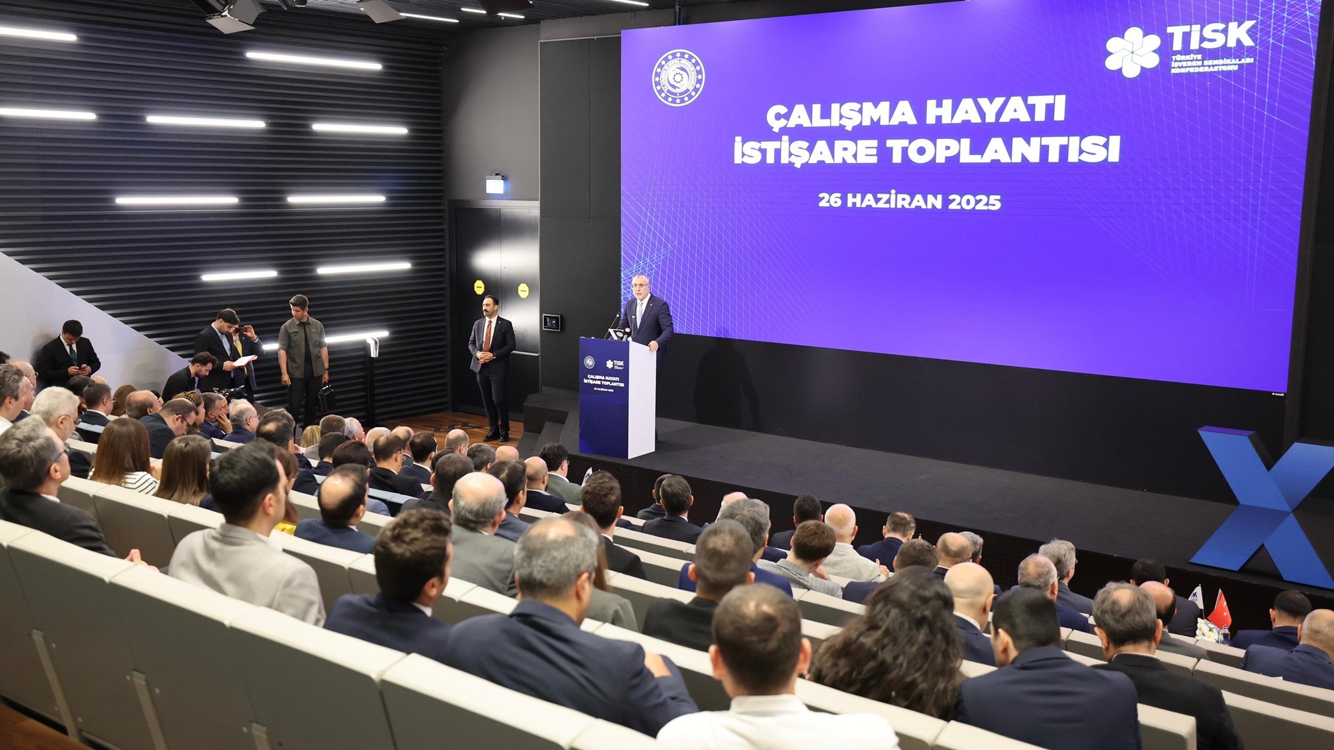 Toplantıya, TİSK Yönetim Kurulu Başkanı Özgür Burak Akkol, bakanlık bürokratları, TİSK Yönetim Kurulu üyeleri ile üye işveren sendikaları ve üye iş yerlerinin üst düzey yöneticileri katıldı.