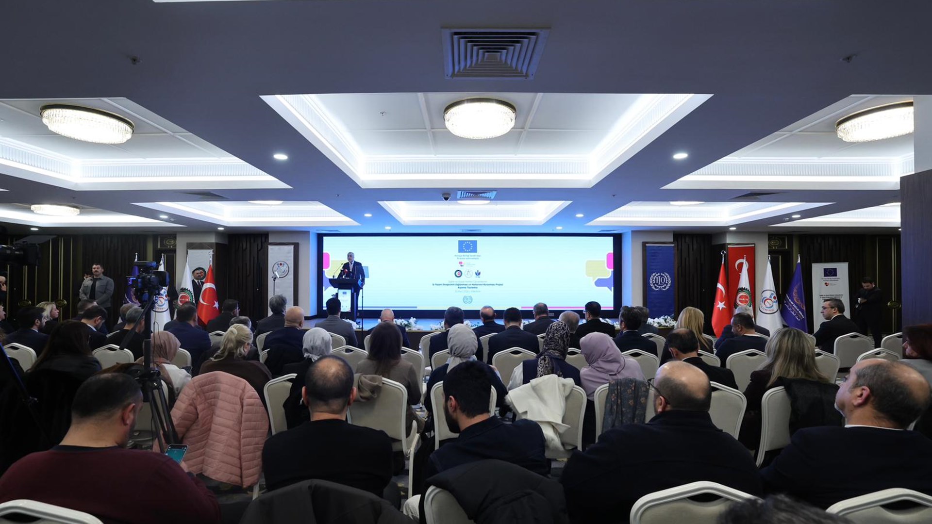 Çalışma ve Sosyal Güvenlik Bakanı Prof. Dr. Vedat Işıkhan, Öz Sağlık ve Sosyal Hizmet İşçileri Sendikası’nın (Öz Sağlık-İş) “Sağlık ve Sosyal Hizmet Çalışanlarının İş Yaşam Dengesinin Sağlanmasına Yönelik Farkındalıklarının Artırılması ve İş-Yaşam Dengesinin Sağlanmasında, Çalışan Haklarının Korunmasına Yönelik Politika Önerilerinin Oluşturulması Projesi” Kapanış Töreni’ne katıldı.