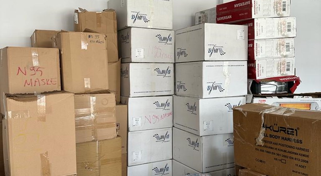 Yine Bakanlığımız deprem bölgesinde yapılacak çalışmalarda kullanılmak üzere solunum koruyucu maske üreticilerinden temin etmiş olduğu 140.000 adet FFP2 ve FFP3 maske ile iş elbisesi, iş ayakkabısı ve enkaz işaretlenmesi için gerekli sprey boyayı ilgililere ulaştırdı.