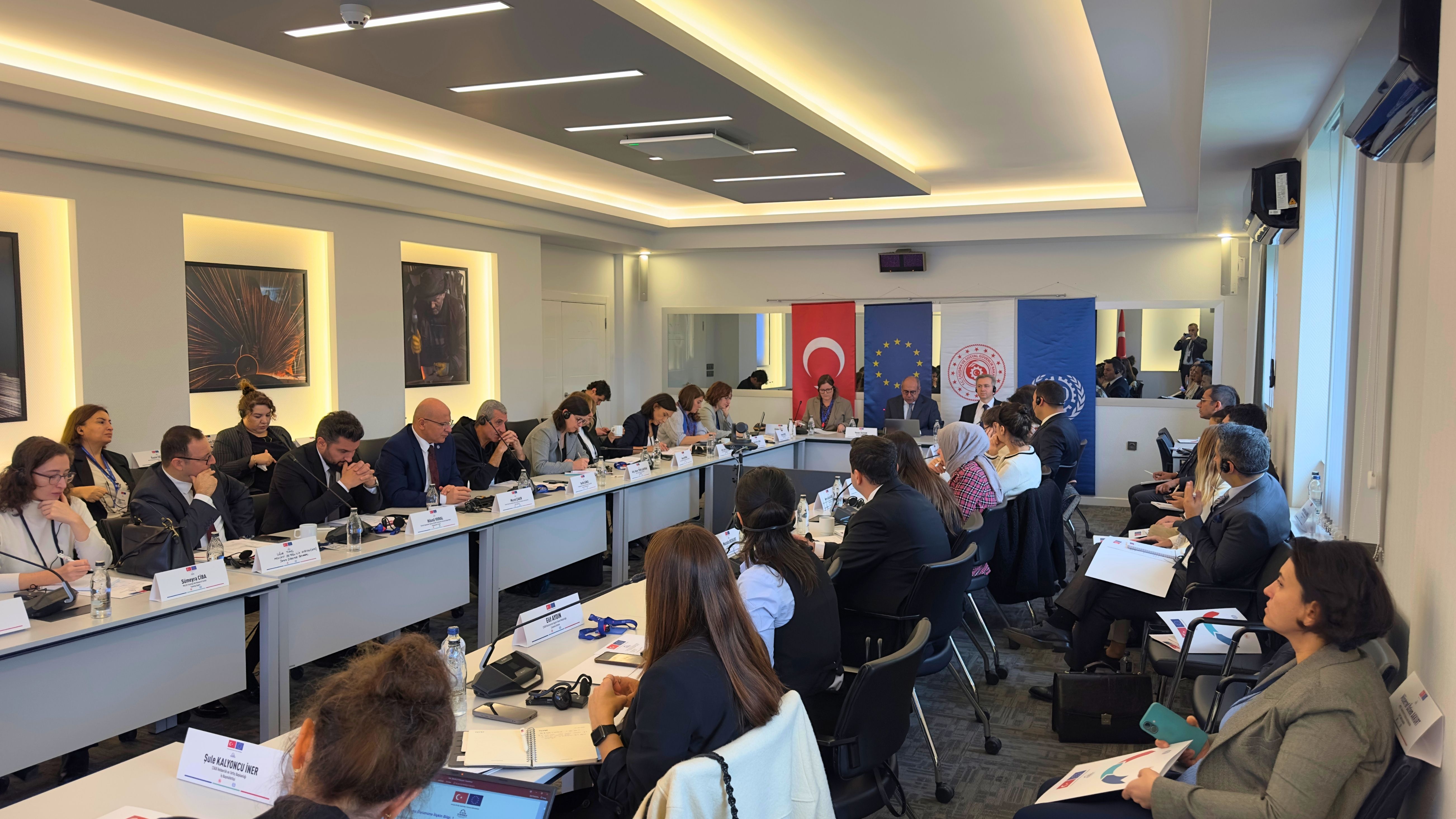 Toplantıya, Rehberlik ve Teftiş Başkanımız Bekir Aktürk, Başkan Yardımcımız Gökhan Ateş, ILO Türkiye Direktörü Yasser Hassan, Avrupa Birliği Türkiye Delegasyonu İnsani ve Sosyal Kalkınma Bölüm Başkan Yardımcısı Esther Bouma başta olmak üzere ilgili bakanlıklar, uluslararası kuruluşlar, sosyal taraflar ve kurum temsilcileri katıldı.