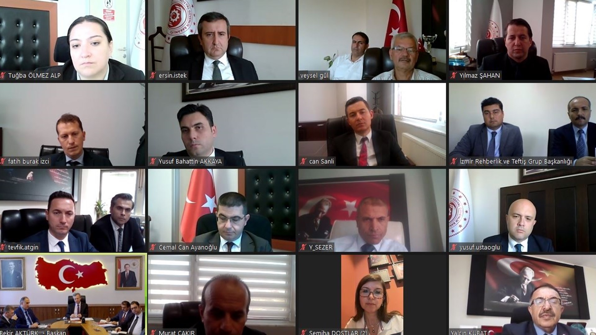 26.09.2023 tarihinde Rehberlik ve Teftiş Başkanı Bekir AKTÜRK’ün başkanlığında düzenlenen çevrim içi toplantıya Başkan Yardımcıları Erol GÜNER, Resül YILMAZ, Davut SEYHAN, Faruk SEVEN ve Kutay SUBAŞI ile Adana, Ankara, Bursa, İstanbul ve İzmir Rehberlik ve Teftiş Grup Başkanlıkları yöneticileri katılmıştır.