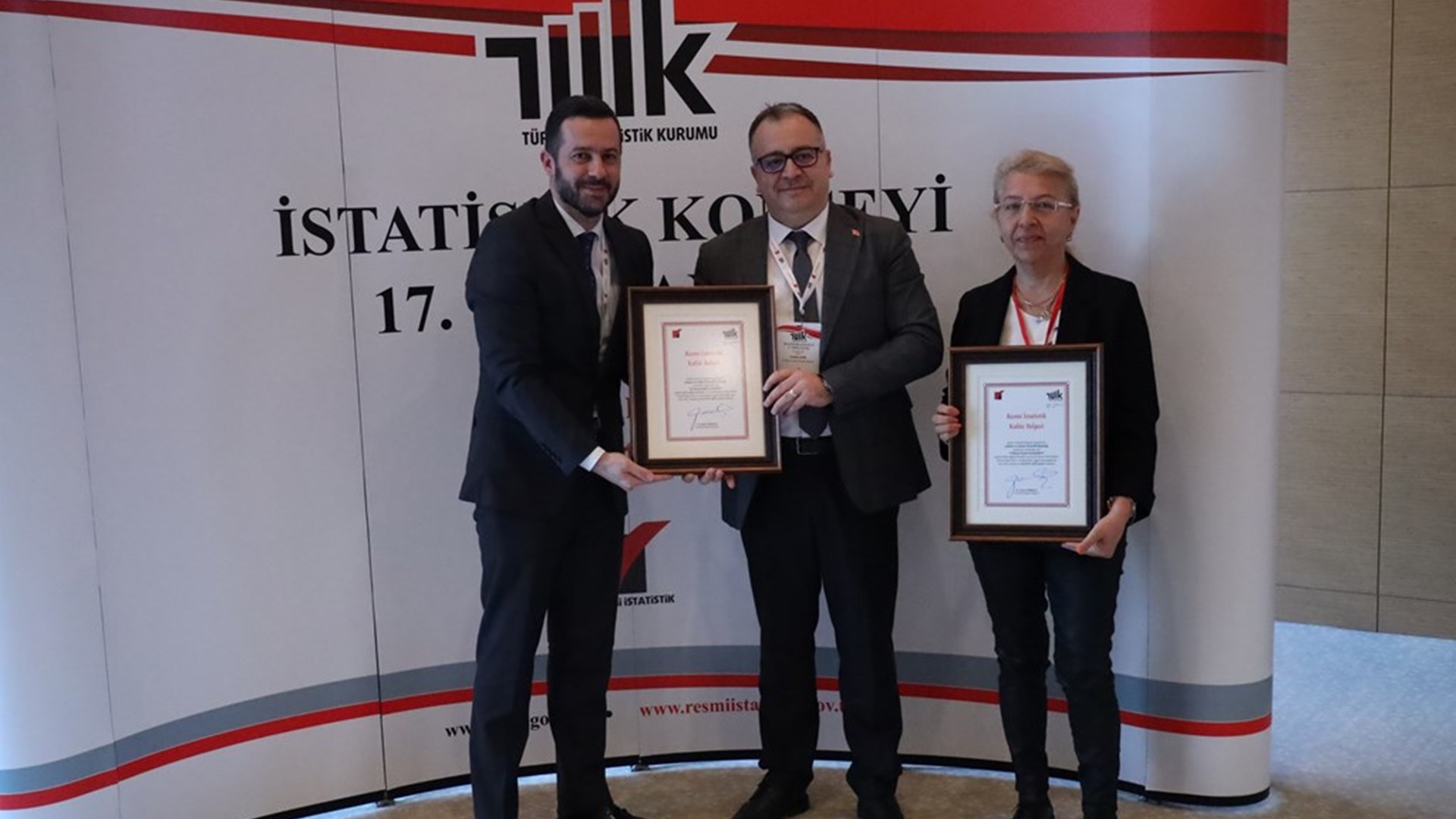 Our Quality Certificate application for the Working Life Statistics, Labor Dispute Statistics and Work Permit Statistics produced and published regularly every year by our General Directorate within the framework of the Official Statistics Program has been approved by TURKSTAT the document was received by Deputy General Director of Labor İbrahim AKIN and Branch Manager Feride IRMAK on behalf of our Ministry at the 17th Statistics Council meeting held at TURKSTAT on 15 November 2023.