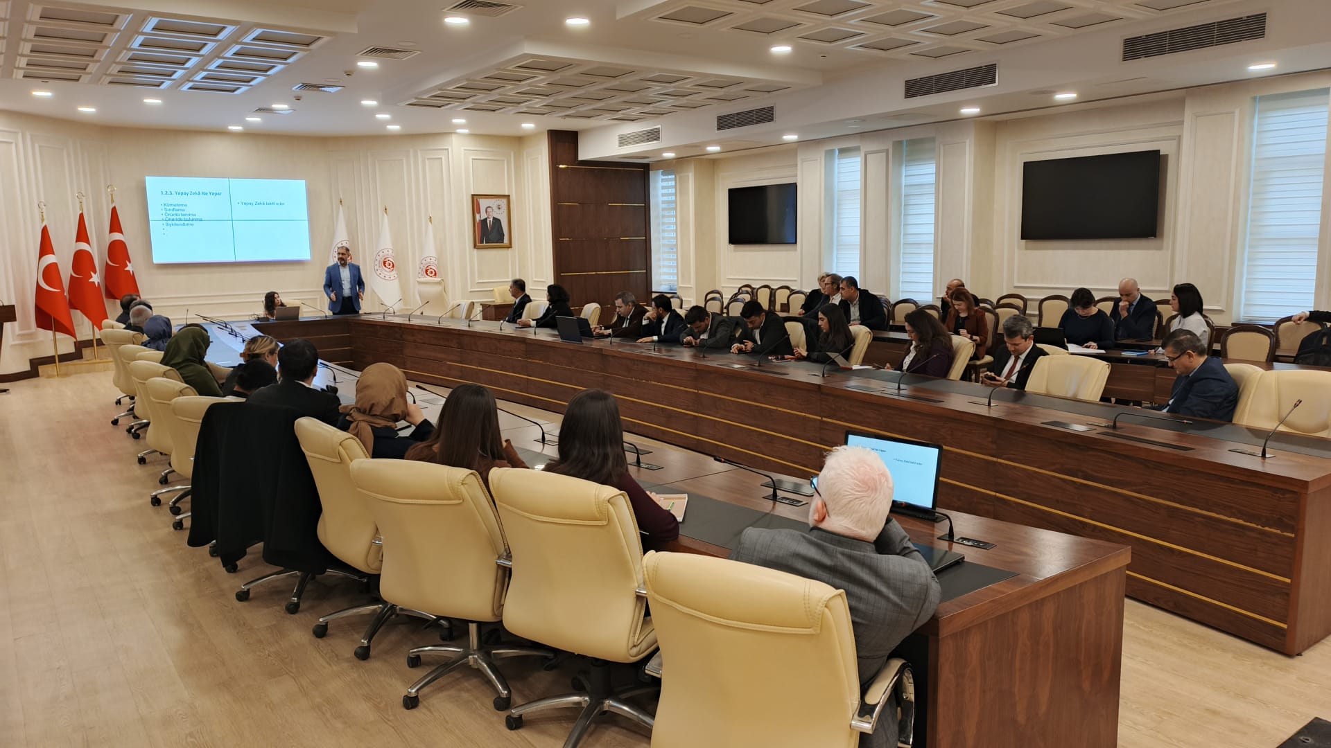 Konuşmanın ardından Ankara Hacı Bayram Veli Üniversitesi öğretim üyeleri Prof. Dr. Selçuk Karaman ve Dr. Semiha Güngör tarafından gerçekleştirilen eğitimde çalışma hayatında hızla yaygınlaşan yapay zekâ teknolojilerinin doğru ve etkin kullanımına ilişkin bilgiler verildi.