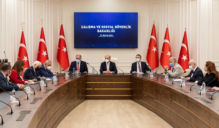 Görüşmede, Türk-İş Genel Mali Sekreteri Ramazan Ağar ve Hak-İş Genel Başkan Vekili Osman Yıldız’ın başkanlığındaki heyetler tarafından anılan Konfederasyonların 2021 Yılı Kamu Toplu İş Sözleşmeleri Çerçeve Protokolüne ilişkin ortak talepleri Sayın Bakanımıza sunuldu. Süreç, sunulan taleplerin hükümet ile kamu işverenlerini temsil eden Türk Ağır Sanayii ve Hizmet Sektörü Kamu İşverenleri Sendikası (TÜHİS) tarafından değerlendirilmesiyle devam edecek.