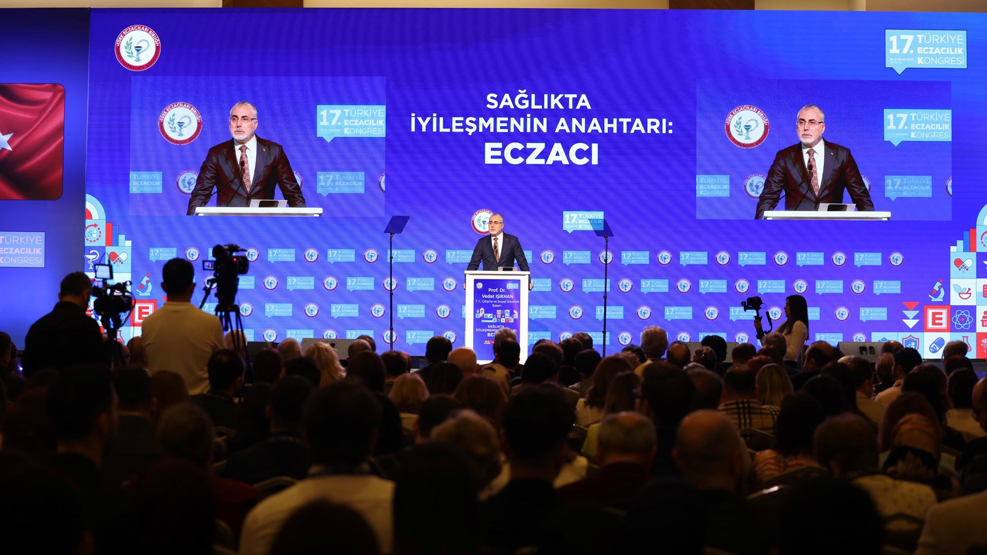 Çalışma ve Sosyal Güvenlik Bakanı Prof. Dr. Vedat Işıkhan, Türk Eczacıları Birliği (TEB) tarafından Antalya’da düzenlenen 17’nci Türkiye Eczacılık Kongresi’ne, Sağlık Bakanı Prof. Dr. Kemal Memişoğlu ile birlikte katıldı.