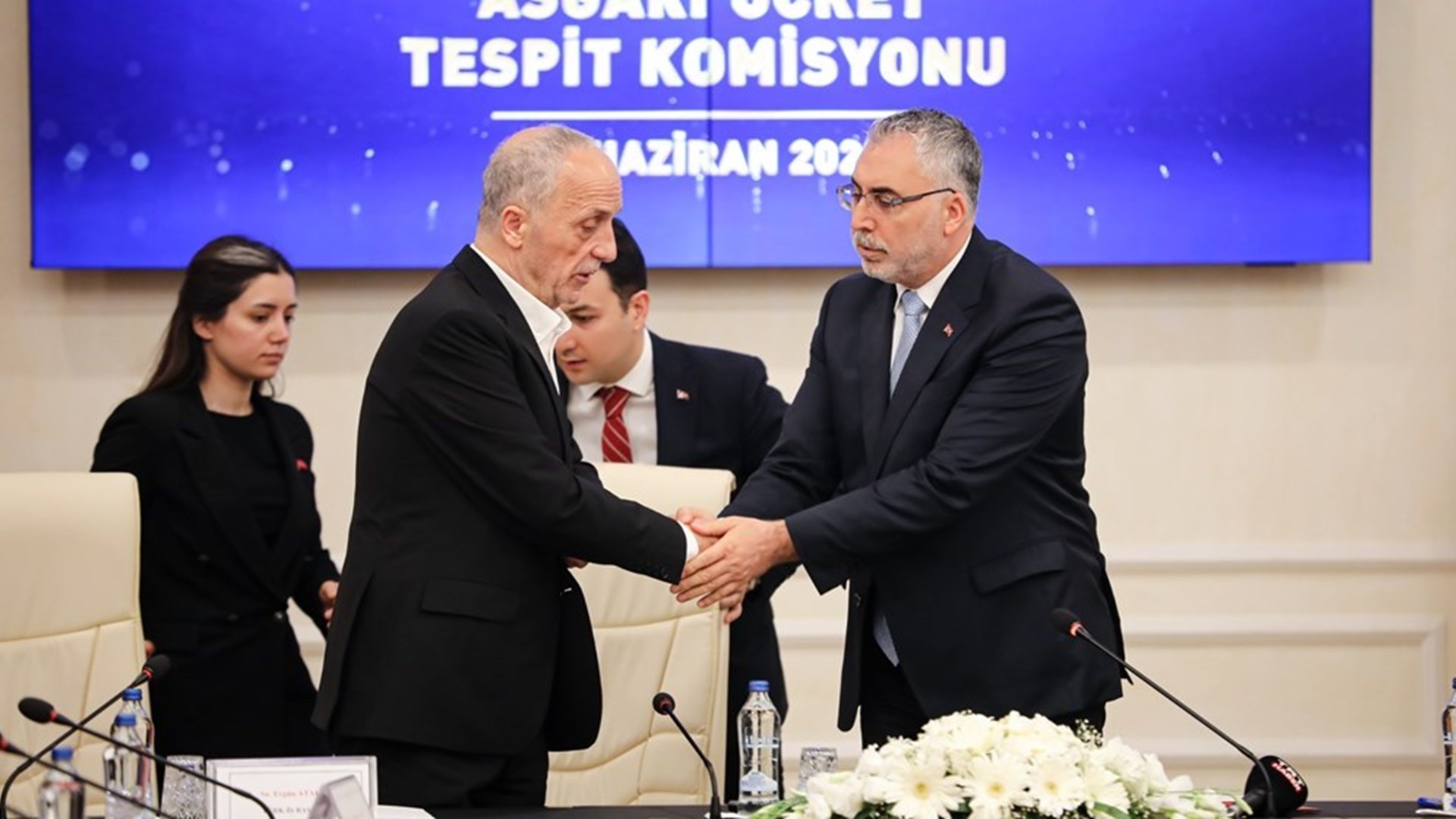 Türk-İş Genel Başkanı Ergün Atalay ise geçen sene Temmuz ayında asgari ücrete yüzde 30 civarında bir zam verildiğini anımsatarak, “Bugün geldiğimiz nokta yüzde 34’tür. İnşallah enflasyon belli bir noktaya gelir de bu alım gücümüzü korumaya devam ederiz. Emeği geçen herkese teşekkür ediyorum. Asgari ücret ülkemize hayırlı olsun” değerlendirmesinde bulundu.